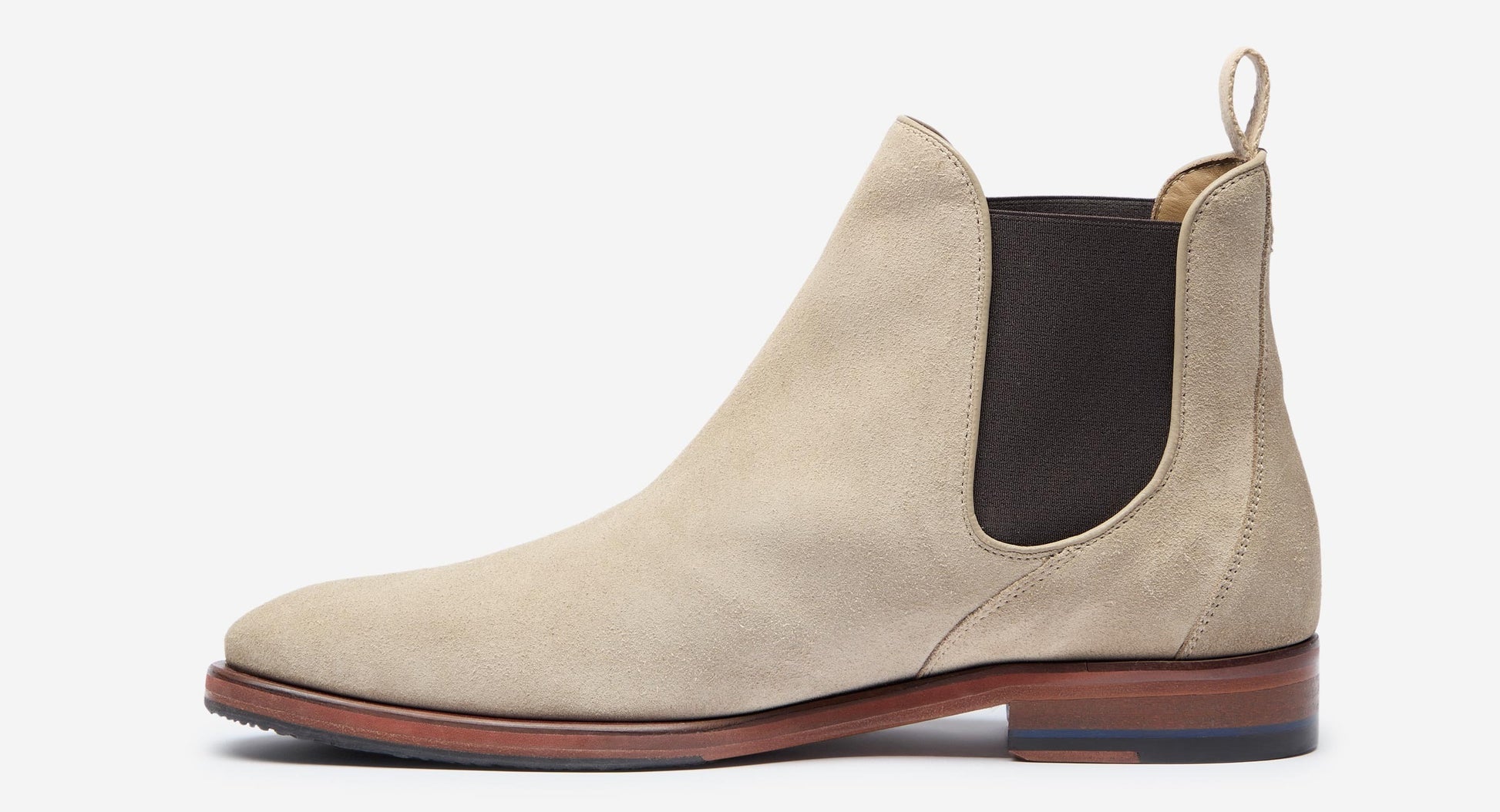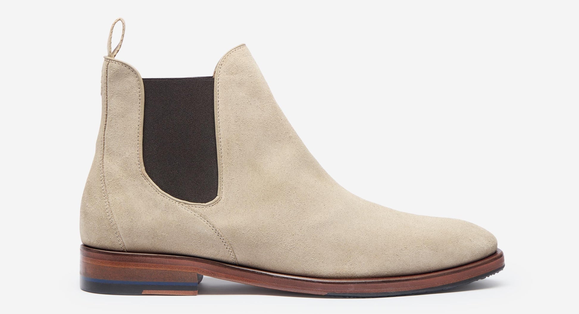 Our classic Chelsea boot is made from smooth Dark Brown Adigo calf leather with contrasting khaki elastic gussets, a fabric back pull tab and a neatly piped topline. We’ve included a ½ calf leather lining and cushioned leather heel pad. The upper is Blake stitched to a leather sole with our signature fingerprint rubber top-piece and a rubber insert in the leather stack heel, for extra practicality.