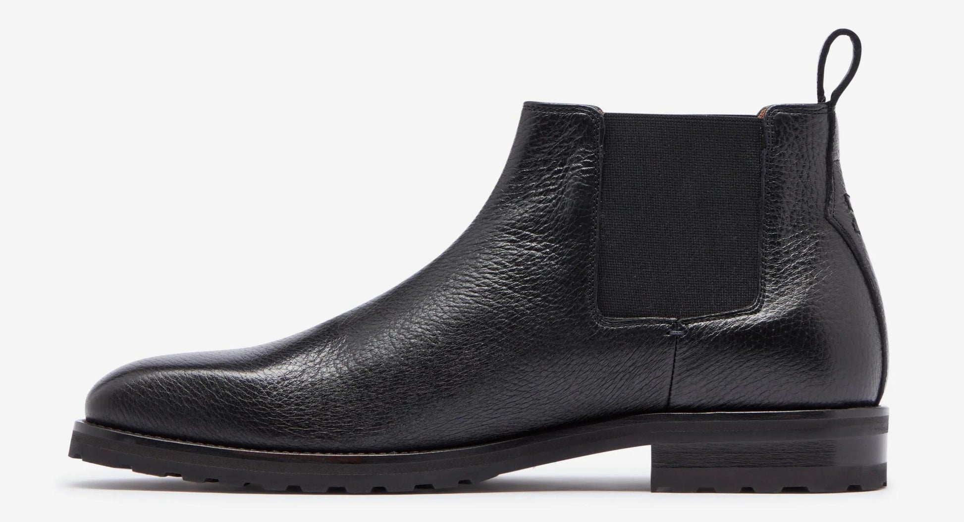 Our classic Chelsea boot is made from smooth Dark Brown Adigo calf leather with contrasting khaki elastic gussets, a fabric back pull tab and a neatly piped topline. We’ve included a ½ calf leather lining and cushioned leather heel pad. The upper is Blake stitched to a leather sole with our signature fingerprint rubber top-piece and a rubber insert in the leather stack heel, for extra practicality.