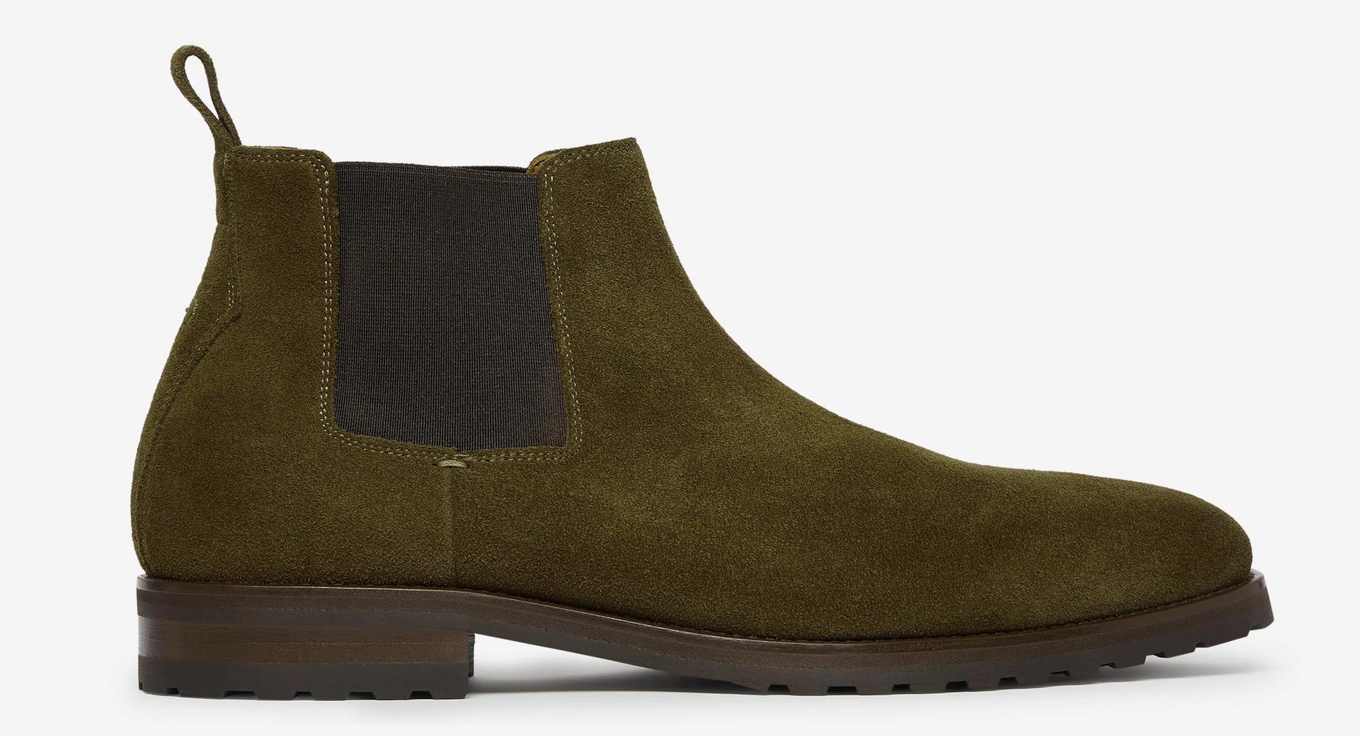 Our classic Chelsea boot is made from smooth Dark Brown Adigo calf leather with contrasting khaki elastic gussets, a fabric back pull tab and a neatly piped topline. We’ve included a ½ calf leather lining and cushioned leather heel pad. The upper is Blake stitched to a leather sole with our signature fingerprint rubber top-piece and a rubber insert in the leather stack heel, for extra practicality.